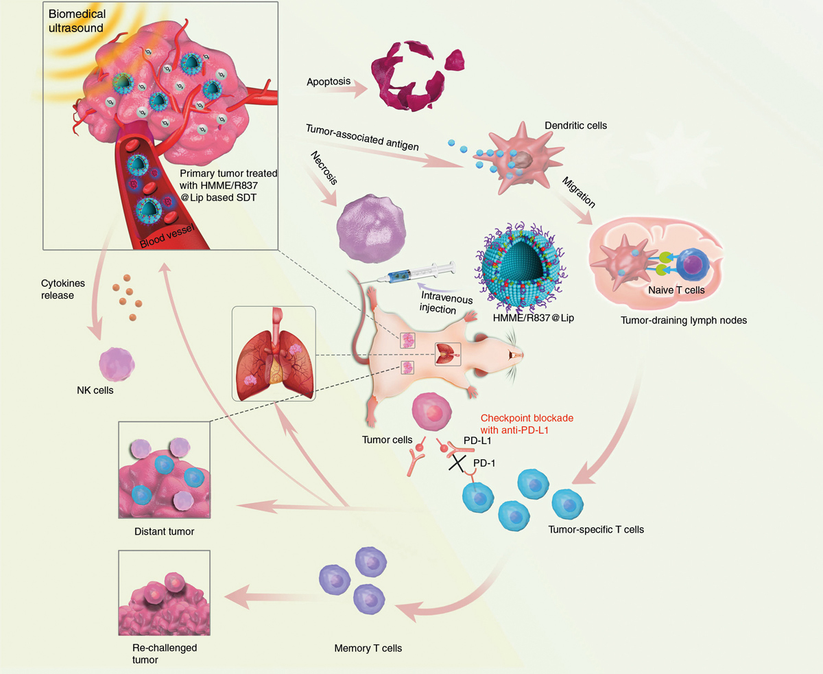 L'association d'un blocage de point de contrôle et d'une thérapie sonodynamique non invasive augmentée par nanosonosensibilisateur réduit la croissance tumorale et les métastases chez la souris